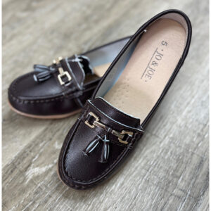 Ladies leather loafers with a gold colour bar, and tassel trim in brown. Dress up or down, These quality loafers are made from a soft genuine leather, are smart, chic, stylish and seriously comfortable! Black rubber sole, A wardrobe staple, … Read MoreSelect options This product has multiple variants. The options may be chosen on the product page -