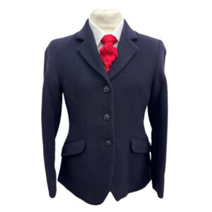 Mrs Candy navy blue show jacket, with navy velvet collar, the collar does have some fading to it as shown in pics, but is still in great show condition! navy pocket jettings and fox head buttons. Maids size 36” Great … Read More -
