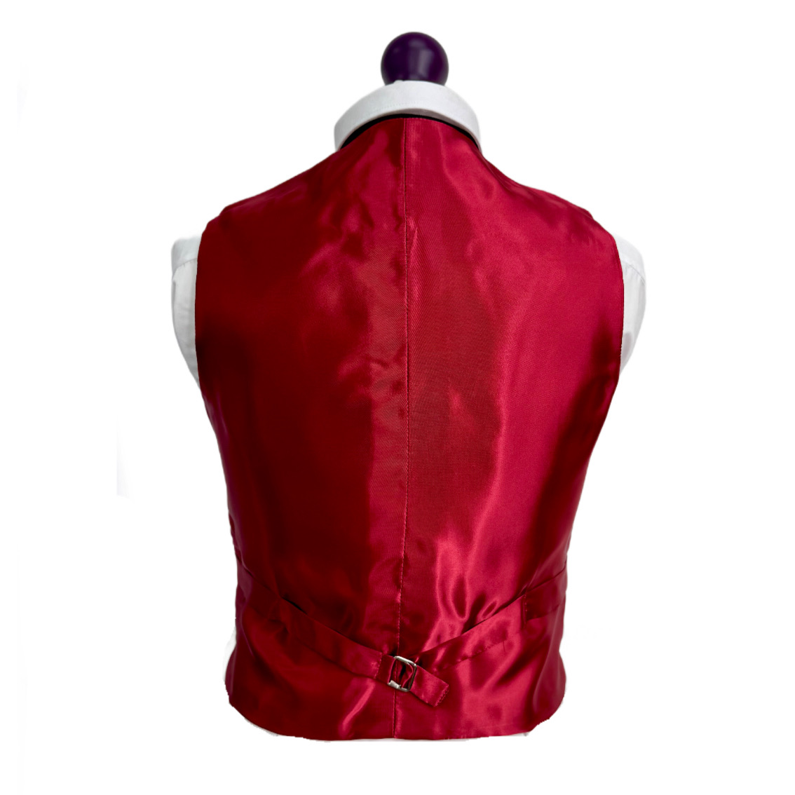 Backed with a bright red satin cloth with adjustable back strap the waistcoat boasts beautiful brass buttons,